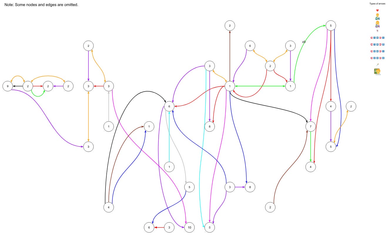 We are given a family tree with lines of ten different colors and a legend at the side to teach us what these colors mean. Matching the nodes with Warriors characters and the colors with relationship-types makes it pretty easy to solve this puzzle and index into it. I think I contributed more to this puzzle than any other— despite not having read Warriors as a kid, I was able to get plenty of mileage from trawling the wiki. Extraction is simple and elegant: you just read the puzzle like a book.
