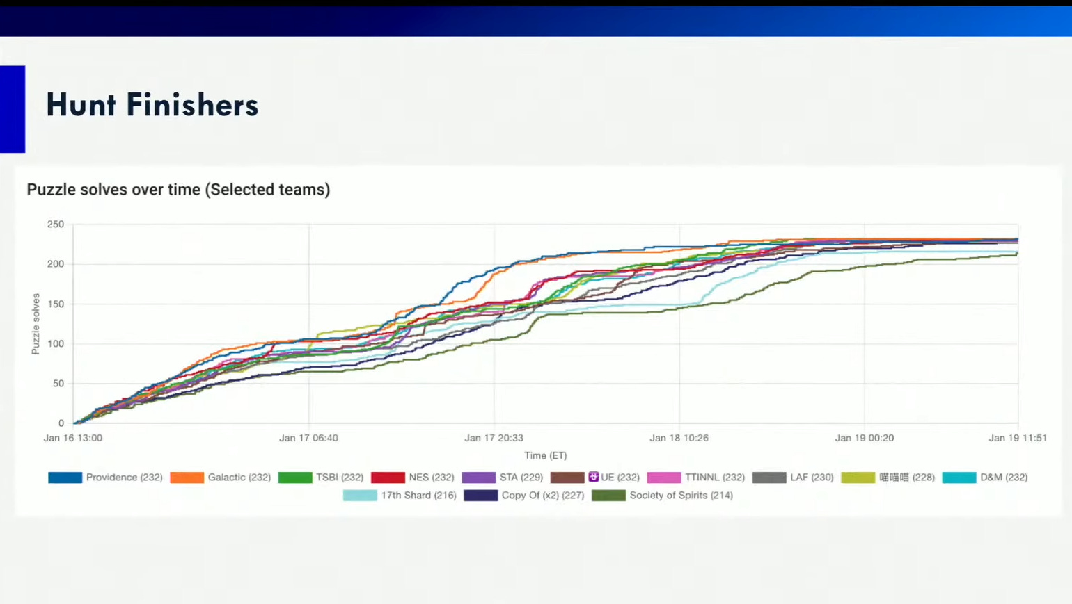 We earned our finish with better focus. Our practice over the year by doing the Galactic Puzzlehunt, ECPH, Teammate Hunt, and other small hunts kept us sharp. Finally, the addition of a few excellent hunters — like Syntax— to the team this year also helped push us over the edge.