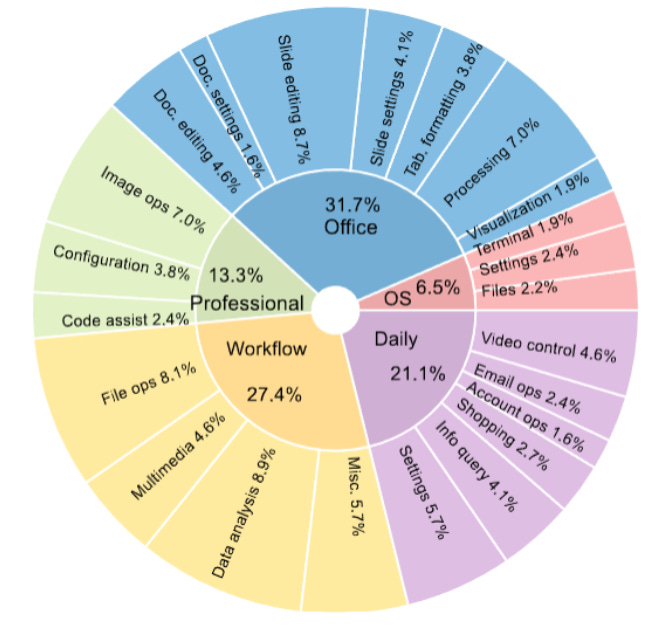 If an LLM wanted to replace me, it would do best by mastering each of these components. It would break down tasks into substasks into atomic tasks. OSWorld assesses how good it is at atomic tasks.