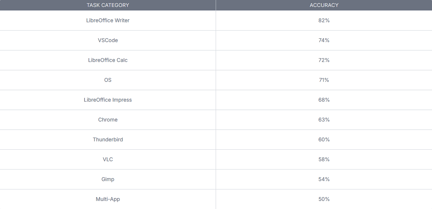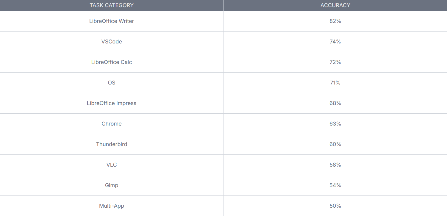You’ll often hear that the human baseline is at about 72.36% for OSWorld. But this ws calculated from a gaggle of computer science students with “basic software usage skills,” so the true average for humans is lower.